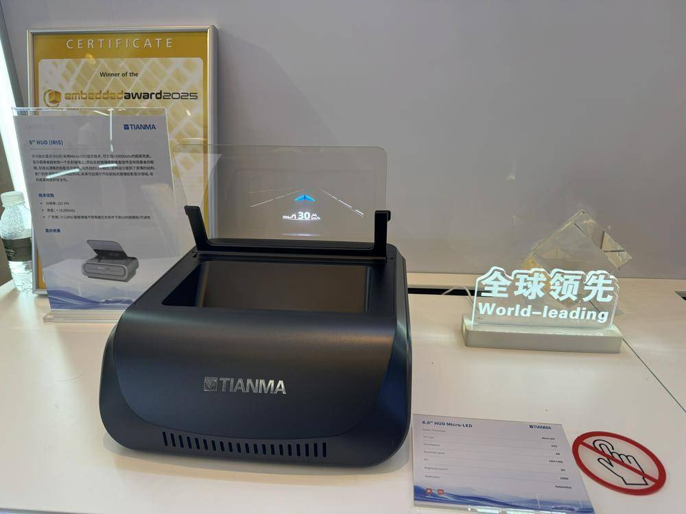 (深天馬A展出的MicroLED HUD 財聯社記者攝)