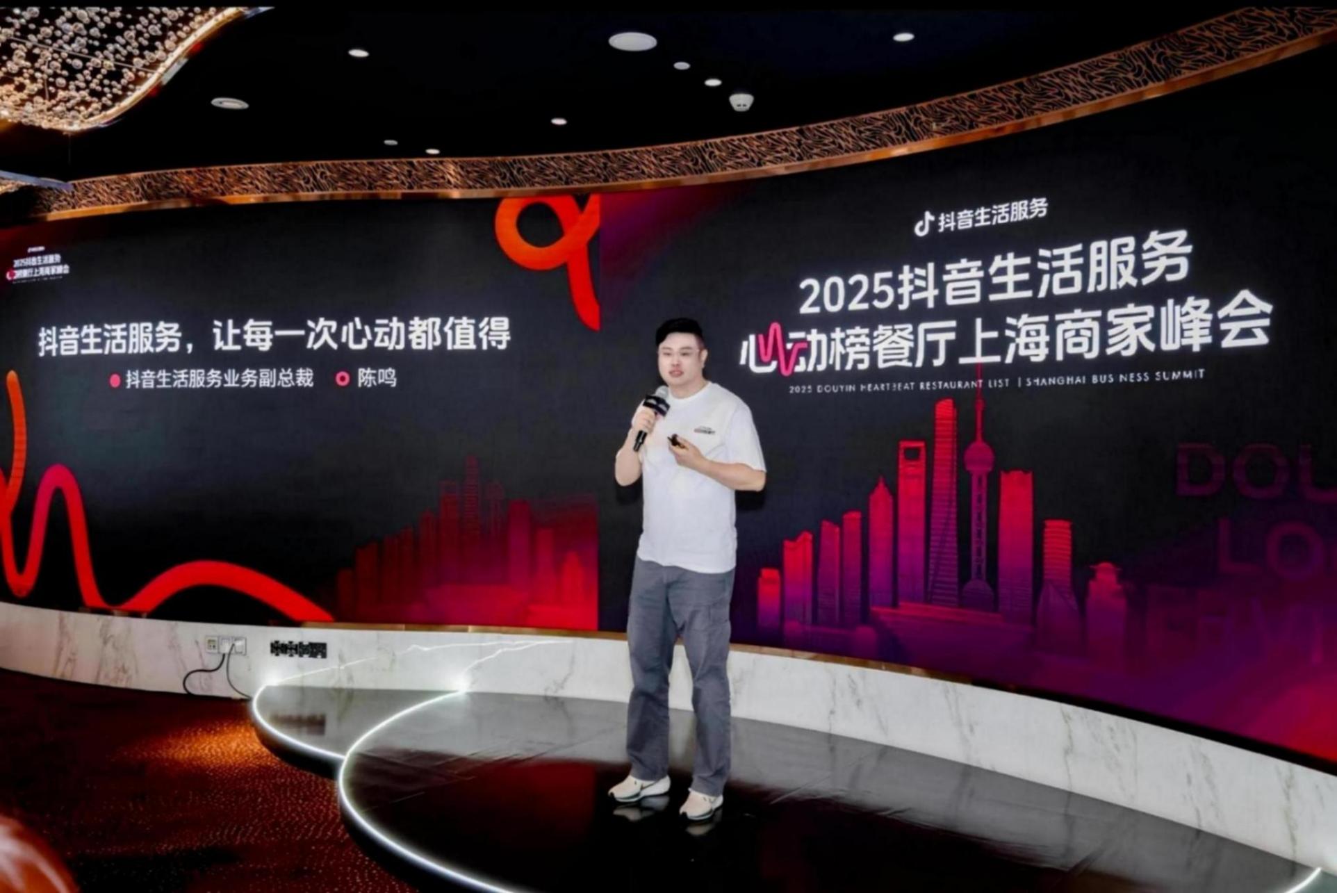 抖音生活服務業務副總裁陳鳴介紹上海商家生態。