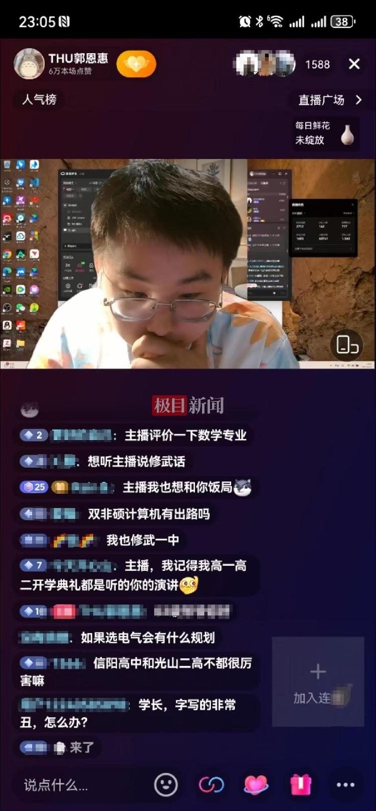 郭恩惠向極目新聞?dòng)浾呓榻B,近段時(shí)間媒體報(bào)道了自己的經(jīng)歷后,受到很多人關(guān)注,不少網(wǎng)友在其評(píng)論區(qū)或者私信詢(xún)問(wèn)其專(zhuān)業(yè)選擇方面的問(wèn)題。“這幾天高考結(jié)束了,也正值填報(bào)志愿的時(shí)候,想把自己的經(jīng)驗(yàn)給大家分享一下。”于是他決定在27日簡(jiǎn)單開(kāi)個(gè)直播,播著玩,“跟大家瞎聊一下。”