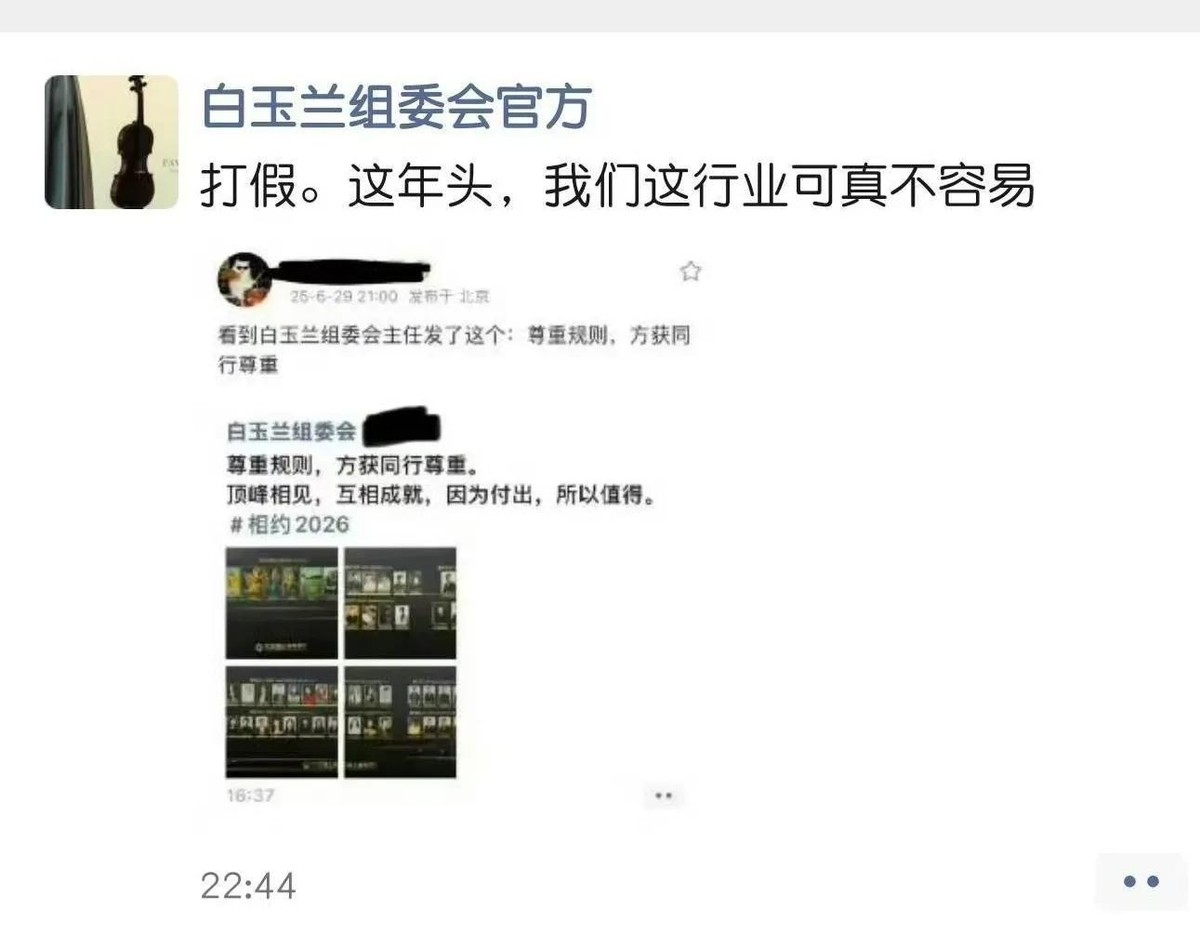 火上澆油的是,同時有個網友接連爆料白玉蘭領獎流程的內幕,內容真假難辨,每一條都能攪出一個小熱搜。細扒一下,從這波熱搜持續發酵到現在,不見白玉蘭組委會或上海電影節公開辟謠,所有的聲音都在社交平臺上自我循環。結果吃瓜群眾越看越懵,這到底是官方立場,還是有人自導自演蹭流量?而兩個疑似相關的朋友圈相互“打假”,把整個局面推到了更迷惑的地步,一個說“尊重規則”,一個又反過來說“我們這行現在太難”,但無論真假,官方號始終保持沉默,完全不接招。