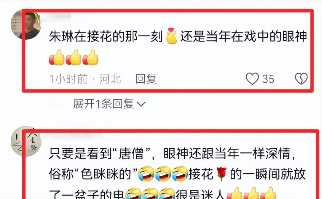 最有意思的是,為了讓大家重溫當初《西游記》的場景,還專門安排了唐僧給朱老師送花,這畫面,真的一秒勾起了無數人的回憶啊。