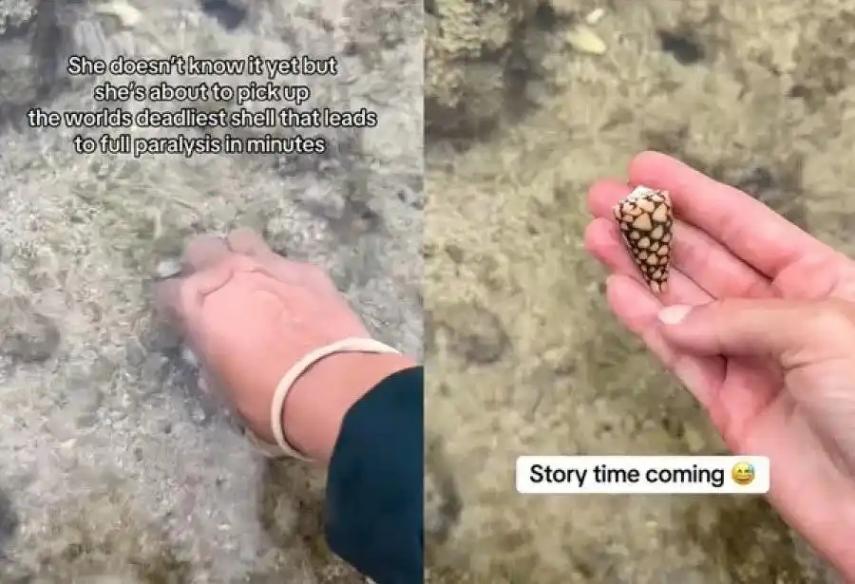 陽(yáng)光下的沖繩海灘閃耀著寶石般的光芒,美國(guó)博主貝基李·羅爾斯跪坐在被海浪沖刷的礁石上,笑容燦爛地對(duì)著鏡頭展示手中一枚花紋絢麗的海螺:“看這個(gè)漂亮的貝殼!”她纖細(xì)的手指捏住螺殼中部,隨意晃動(dòng)著倒出沙石。當(dāng)注意到殼口有活物蠕動(dòng),她隨手將其拋回大海——這個(gè)看似尋常的動(dòng)作,在網(wǎng)絡(luò)上掀起了超過(guò)3000萬(wàn)次觀看的滔天巨浪。