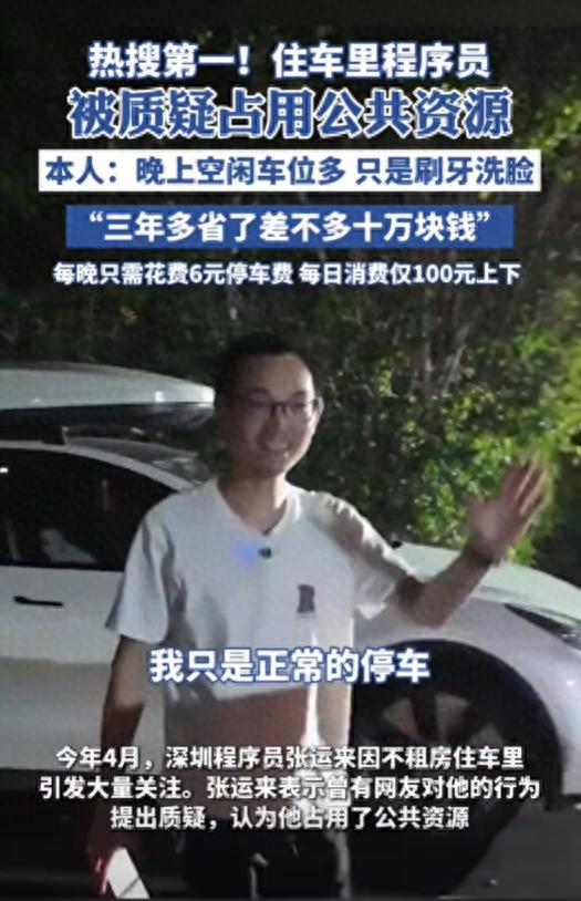 今年4月,深圳程序員張運(yùn)來(lái)因不租房住車?yán)镆l(fā)大量關(guān)注。張運(yùn)來(lái)表示曾有網(wǎng)友對(duì)他的行為提出質(zhì)疑,認(rèn)為他占用了公共資源。