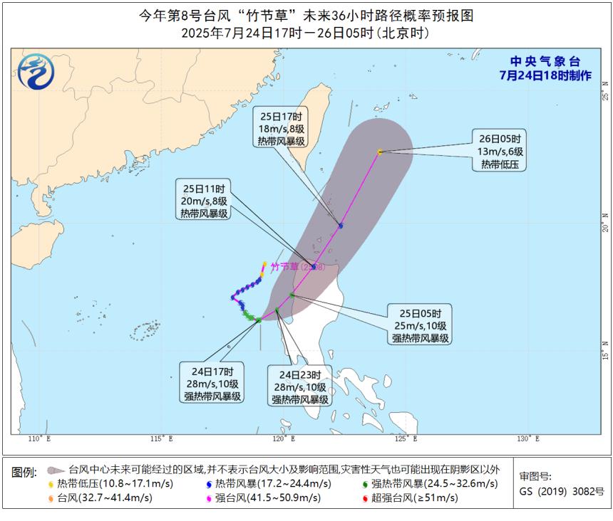 臺風“范斯高”和“竹節草”雖然乍一看氣勢洶洶,但實則在上演“鷸蚌相爭”,在相互影響下消磨了能量。預計,臺風“范斯高”將于7月24日傍晚移入東海南部海面,并向浙江南部到福建北部一帶沿海靠近,強度逐漸減弱。臺風“竹節草”將于7月25日凌晨到上午,以熱帶風暴級的強度在菲律賓呂宋島西北部沿海登陸,爾后進入巴士海峽并趨向臺灣以東洋面,強度也逐漸減弱。
