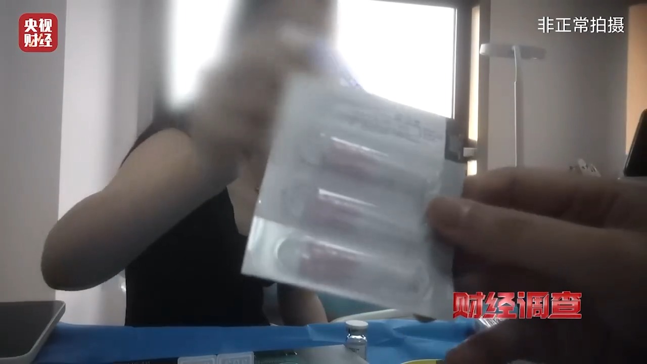 工作人員用別人使用過的針頭劃開水光針劑的包裝盒,因找不到面膜棒,竟用針頭套充當工具為記者涂抹麻藥。