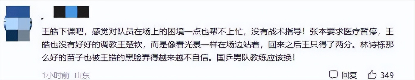 網友在社交平臺找到王皓賬號,評論要他換戰術,這些聲音不少。還有部分討論王勵勤執教成績,說和上任前相比,成績出現落差。