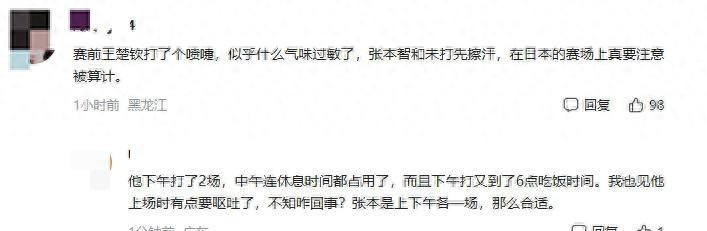 有人說,張本智和比賽中用了醫療暫停,看回放傷情不重。王楚欽總被拖慢節奏。球迷討論組里多有人發言,很多都在說賽程問題和暫停問題。