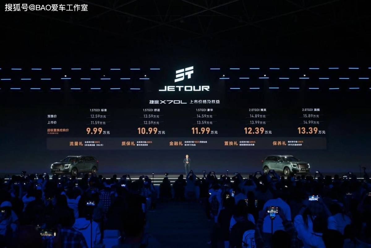 發布會現場公布的價格與權益組合,進一步凸顯捷途X70L的性價比優勢。其超級置換搶購價低至9.99萬元,較預售價最高下探2.6萬元;同步推出的5項權益涵蓋:價值2000元5年免費流量(10G/月)、6888元整車終身質保、7000元貸款貼息(享3年7萬免息)、16000元超級置換現金優惠,以及限時4000元5年10次基礎保養。