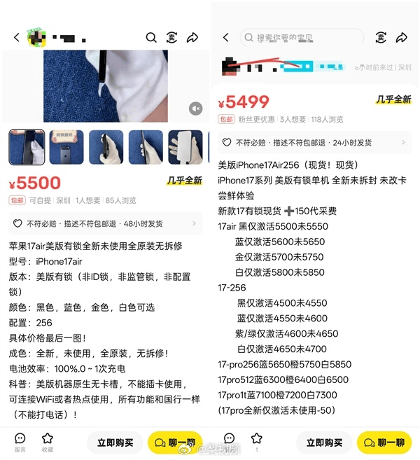 10月8日,有網友發(fā)現美版iPhone 17 Air居然已經在二手平臺上架,還標價5500元。問題是,國行版蘋果官網都還沒開賣呢,賣家倒先“首發(fā)”了。