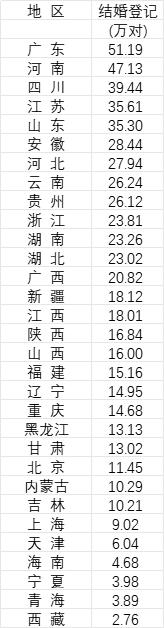 哪些省份的結(jié)婚人數(shù)多?