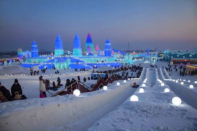 在黑龍江哈爾濱,冰雪大世界宛如一座晶瑩剔透的夢(mèng)幻城堡。巨型冰雕巧奪天工,冰上雜技演員在冰面翩翩起舞,冰雪音樂(lè)節(jié)的動(dòng)感旋律與冰雪世界交織,讓游客沉浸在冰與火的激情交融中。吉林長(zhǎng)白山腳下,雪地摩托在銀白雪野中劃出一道道炫麗軌跡,冰上垂釣者靜候魚(yú)兒咬鉤,感受冰雪運(yùn)動(dòng)的獨(dú)特魅力。遼寧沈陽(yáng)的冰雪主題公園內(nèi),親子家庭忙著參與冰上涂鴉,在潔白冰面上繪出五彩夢(mèng)想;冰雪迷宮里,人們穿梭探索,歡聲笑語(yǔ)回蕩在冰雪之間,每一個(gè)場(chǎng)景都將寒冷冬日轉(zhuǎn)化為歡樂(lè)源泉。